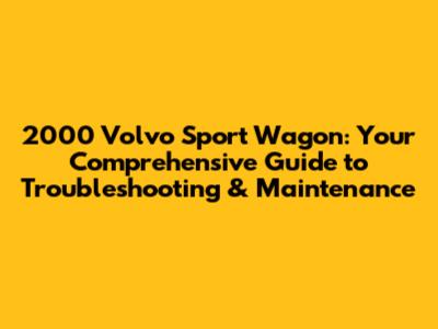 2000 Volvo Sport Wagon: Troubleshooting & Maintenance