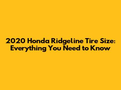 2020 Honda Ridgeline Tire Size: A Comprehensive Guide