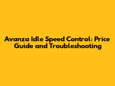 Avanza Idle Speed Control Price: What to Expect
