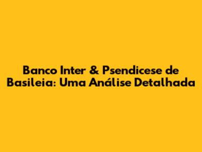 Banco Inter & Psendicese De Basileia: Uma Análise Detalhada