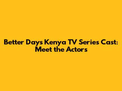 Hey guys! Ever get hooked on a TV series and find yourself completely invested in the characters? That's exactly how I felt watching Better Days, the Kenyan TV series that's been making waves. What truly makes a show memorable? It's the cast, right? The actors who breathe life into the story and make you feel all the feels. So, let’s dive into the incredible cast of Better Days and find out who plays who, and maybe a little about the actors themselves.
