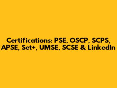 Certifications: PSE, OSCP, SCPS, APSE, Set+, UMSE, SCSE & LinkedIn