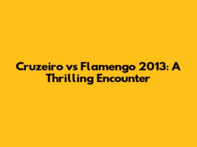 Cruzeiro Vs Flamengo 2013: A Thrilling Encounter