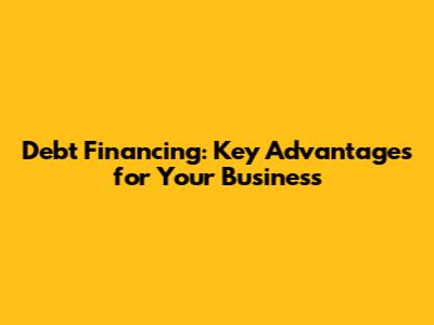 Debt Financing: Key Advantages For Your Business