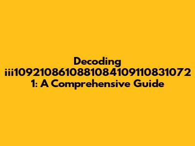 Decoding 'iii1092108610881084109110831072 1': A Comprehensive Guide