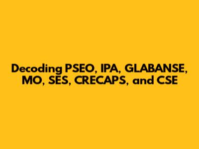 Decoding PSEO, IPA, GLABANSE, MO, SES, CRECAPS, And CSE