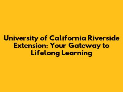 Hey guys! Ever thought about leveling up your skills or diving into a new field without the commitment of a full-time degree? The University of California, Riverside Extension (UCR Extension) might just be your golden ticket! It’s all about accessible, career-focused education for anyone looking to grow, whether you're a working professional, a recent grad, or just someone eager to learn. Let's dive into what makes UCR Extension so awesome and how it can help you achieve your goals.