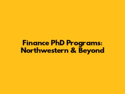 Finance PhD Programs: Northwestern & Beyond