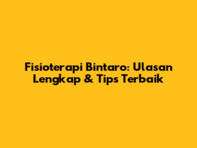 Fisioterapi Bintaro: Ulasan Lengkap & Tips Terbaik