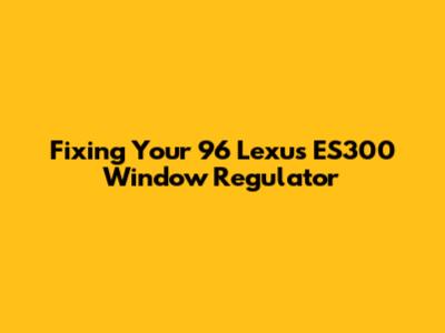 Understanding the '96 Lexus ES300 Window Regulator