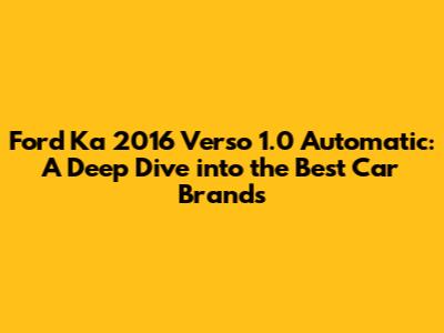 Hey car enthusiasts! Are you cruising around in a Ford Ka 2016 Verso 1.0 Automatic? That's awesome! It's a fantastic little car, perfect for zipping around town and getting you where you need to go. But, like any car owner, you might be curious about which brands offer the best parts, services, and overall experience for your ride. Well, you're in the right place! We're going to dive deep into the top car brands that cater to your Ford Ka 2016 Verso 1.0 Automatic. Get ready for some insightful tips, brand spotlights, and everything you need to know to keep your car running smoothly and looking sharp. Let's get started, shall we?