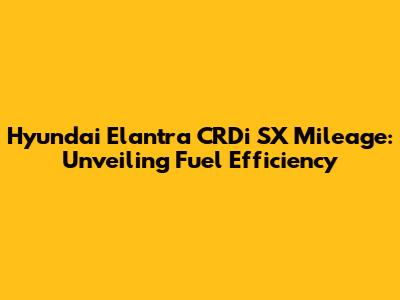 Hyundai Elantra CRDi SX: Fuel Efficiency Explained