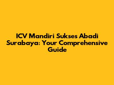 Let's dive deep into ICV Mandiri Sukses Abadi Surabaya, a name that might sound unfamiliar to some, but holds significant importance in its respective field. This guide aims to provide you with a comprehensive understanding of what ICV Mandiri Sukses Abadi Surabaya is all about, its operations, and its impact. Whether you're a local resident, a business enthusiast, or simply curious, this article is tailored just for you. We will explore various facets of this entity, ensuring you walk away with valuable insights.