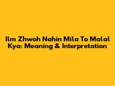 Ilm Zhwoh Nahin Mila To Malal Kya: Meaning & Interpretation