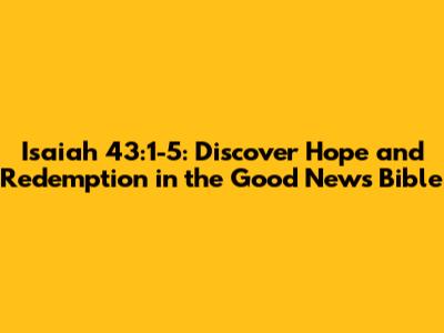 Hey guys! Today, we're diving deep into one of the most comforting and powerful passages in the Bible: Isaiah 43:1-5, specifically from the Good News Bible. This passage is packed with promises of hope, redemption, and unwavering support from God. If you're feeling lost, overwhelmed, or just in need of a spiritual boost, this is the place to be. So, grab your Bibles (or just keep scrolling!), and let’s unpack the profound message within these verses.