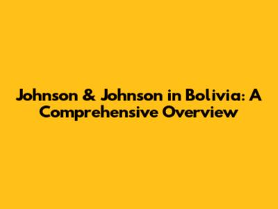 Johnson & Johnson In Bolivia: A Comprehensive Overview