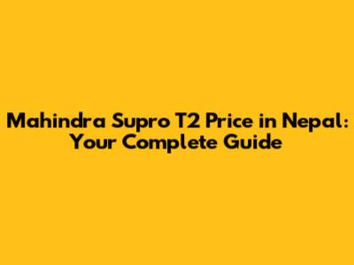 Mahindra Supro T2 Price In Nepal: Your Complete Guide