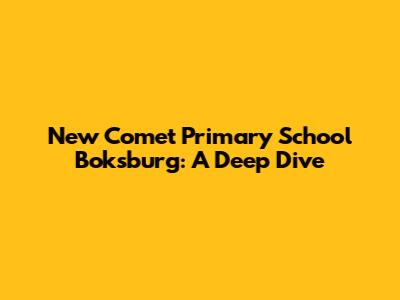 Hey guys! Let's explore everything about New Comet Primary School in Boksburg. This school is more than just a place of learning; it's a community hub where young minds are nurtured and prepared for the future. From its rich history to its modern approach to education, New Comet Primary School stands out as a beacon of academic excellence in the area. Whether you're a parent considering enrolling your child, a former student reminiscing about your school days, or simply someone interested in the educational landscape of Boksburg, this comprehensive overview will provide you with all the details you need. We’ll cover the school’s ethos, curriculum, extracurricular activities, and its impact on the local community. So, buckle up and get ready to dive into the world of New Comet Primary School!