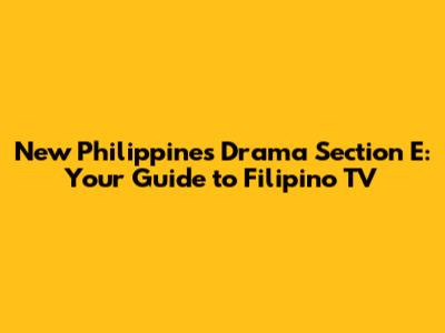 New Philippines Drama Section E: Your Guide To Filipino TV