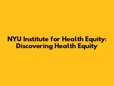 NYU Institute For Health Equity: Discovering Health Equity