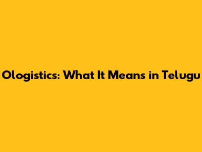 Ologistics: What It Means In Telugu