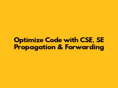 Optimize Code With CSE, SE Propagation & Forwarding