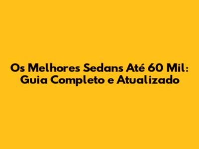 Os Melhores Sedans Até 60 Mil: Guia Completo E Atualizado