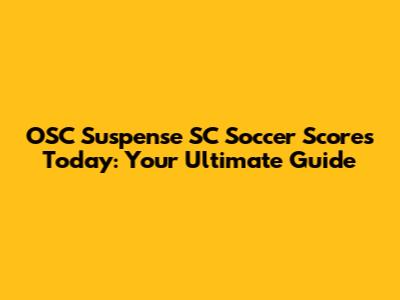 OSC Suspense SC Soccer Scores: Stay Updated