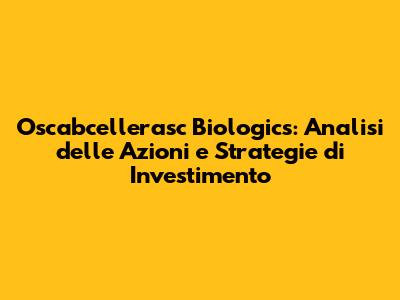 Oscabcellerasc Biologics: Azioni E Opportunità Di Investimento