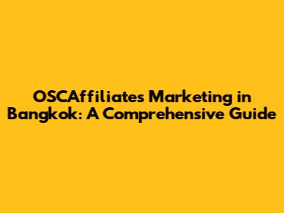 OSCAffiliates Marketing In Bangkok: A Comprehensive Guide