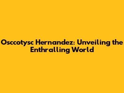 Osccotysc Hernandez: Unveiling The Enthralling World