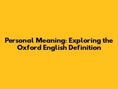 Personal Meaning: Exploring The Oxford English Definition