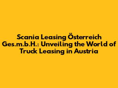 Hey guys, let's dive into the world of Scania Leasing Österreich Ges.m.b.H., a significant player in Austria's commercial vehicle market. If you're scratching your head about what this actually is, don't worry – we're going to break it down, covering everything from what Scania Leasing offers to why it might be a smart move for your business. This article is your go-to guide for understanding Scania Leasing in Austria. We'll explore the services they provide, the benefits of leasing Scania trucks, and how it all works in the Austrian context. Whether you're a seasoned fleet manager or just starting to consider your transport options, you'll find plenty of helpful insights here.