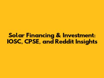 Solar Financing & Investment: IOSC, CPSE, And Reddit Insights