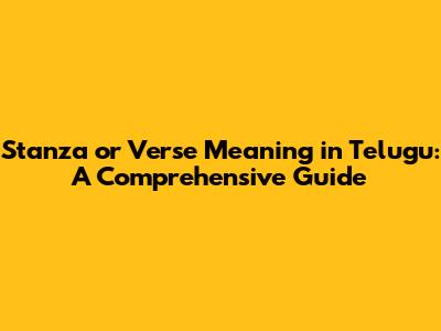 Stanza Or Verse Meaning In Telugu: A Complete Guide