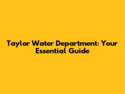 Taylor Water Department: Your Essential Guide