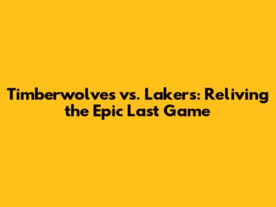 Timberwolves Vs. Lakers: Reliving The Epic Last Game