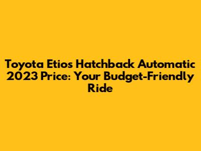 Hey guys! So, you're eyeing the Toyota Etios Hatchback Automatic 2023 and want to know about the price, right? Well, you've come to the right place! The Toyota Etios has always been known as a solid, no-nonsense car that offers incredible value for money, and the 2023 automatic hatchback version is no exception. It’s the kind of car that just keeps on giving, making it a fantastic choice for budget-conscious buyers who don't want to compromise on reliability or essential features. Let's dive deep into what makes this car a smart buy and what you can expect to shell out for it. We'll cover everything from its main selling points to factors that might influence the final price, so stick around!