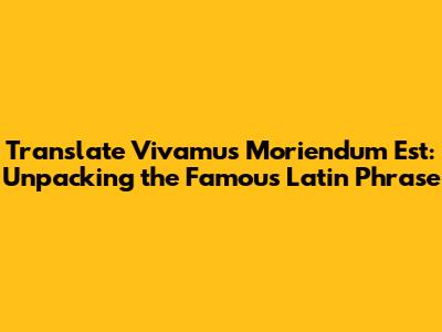 Translate Vivamus Moriendum Est: Meaning & Significance
