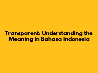 Transparent: Understanding The Meaning In Bahasa Indonesia