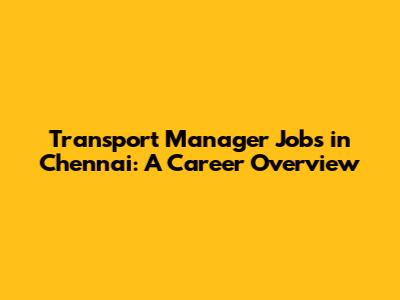 Transport Manager Jobs In Chennai: A Career Overview
