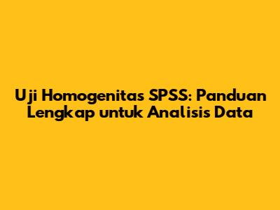 Uji Homogenitas SPSS: Panduan Lengkap Untuk Analisis Data