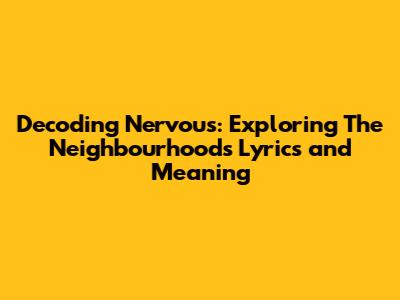 Hey everyone! Ever found yourself completely captivated by a song? That's definitely how I feel about "Nervous" by The Neighbourhood. The song has this raw, vulnerable vibe that just pulls you in. Today, we're diving deep into the meaning of "Nervous" and exploring what makes this track so special. We'll break down the lyrics, the emotions they convey, and how it all comes together to create such a powerful musical experience. So, grab your headphones, get comfy, and let's unravel the secrets behind The Neighbourhood's hit song, shall we?
