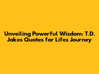 Unveiling Powerful Wisdom: T.D. Jakes Quotes For Life's Journey