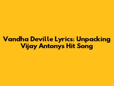 Hey guys! Let's dive deep into the world of music, specifically focusing on the awesome track "Vandha Deville" by the one and only Vijay Antony. This song is not just a catchy tune; it's got layers, nuances, and a vibe that's hard to resist. In this article, we'll break down the lyrics, explore their meaning, and see what makes this song a hit. Buckle up, music lovers! We're about to embark on a lyrical journey.